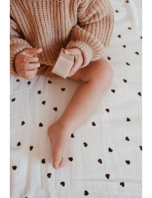 Lange L 110x110 cm Bianca écru imprimé coeur noir