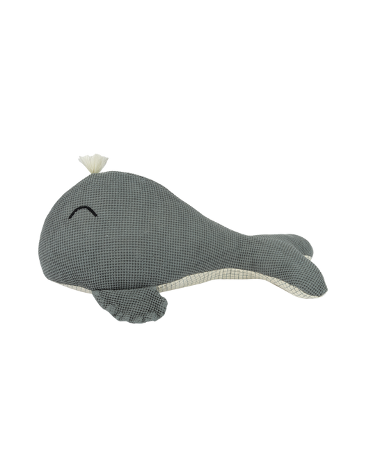Coussin Wabi-Sabi baleine brodé en coton lavé