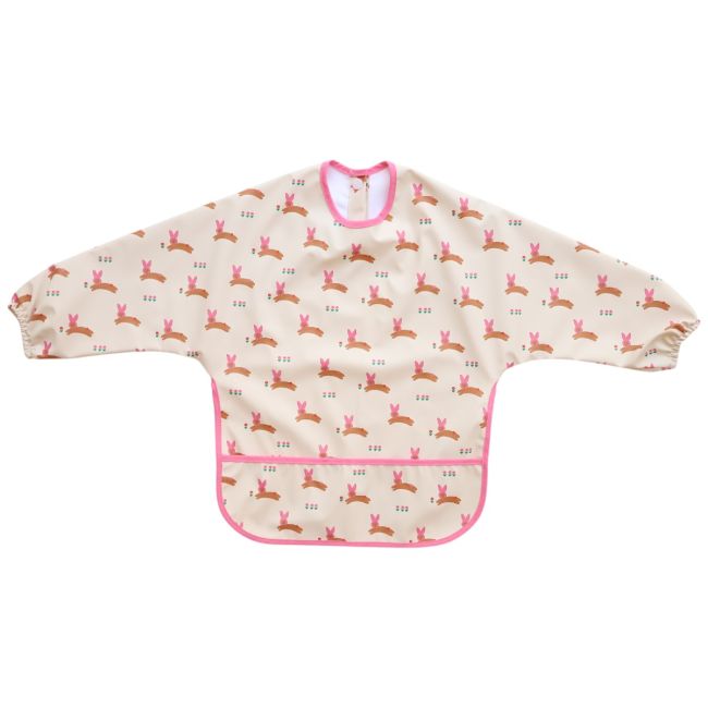 Misez sur le Bavoir tablier manches longues Lapin rose pour un bébé bien protégé !