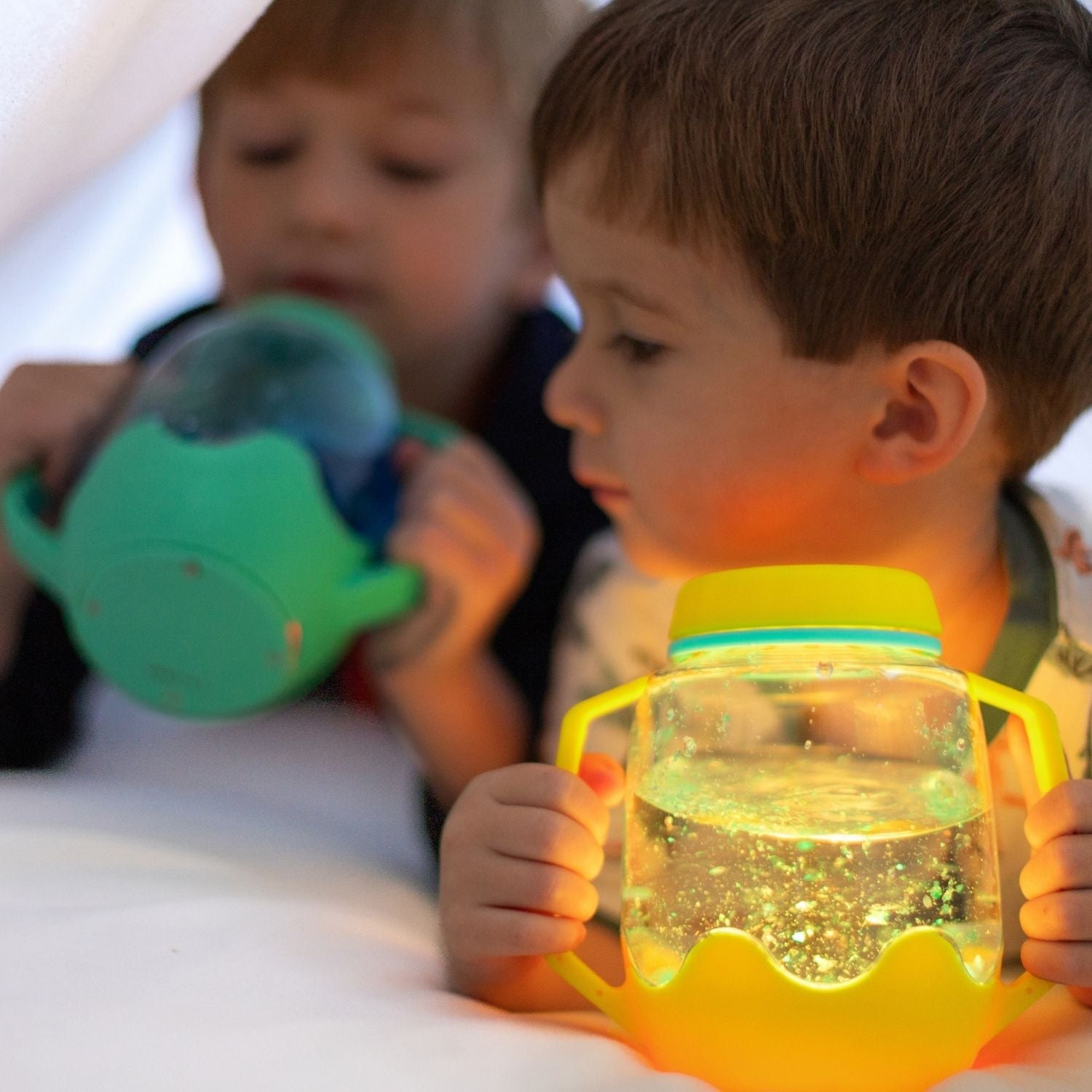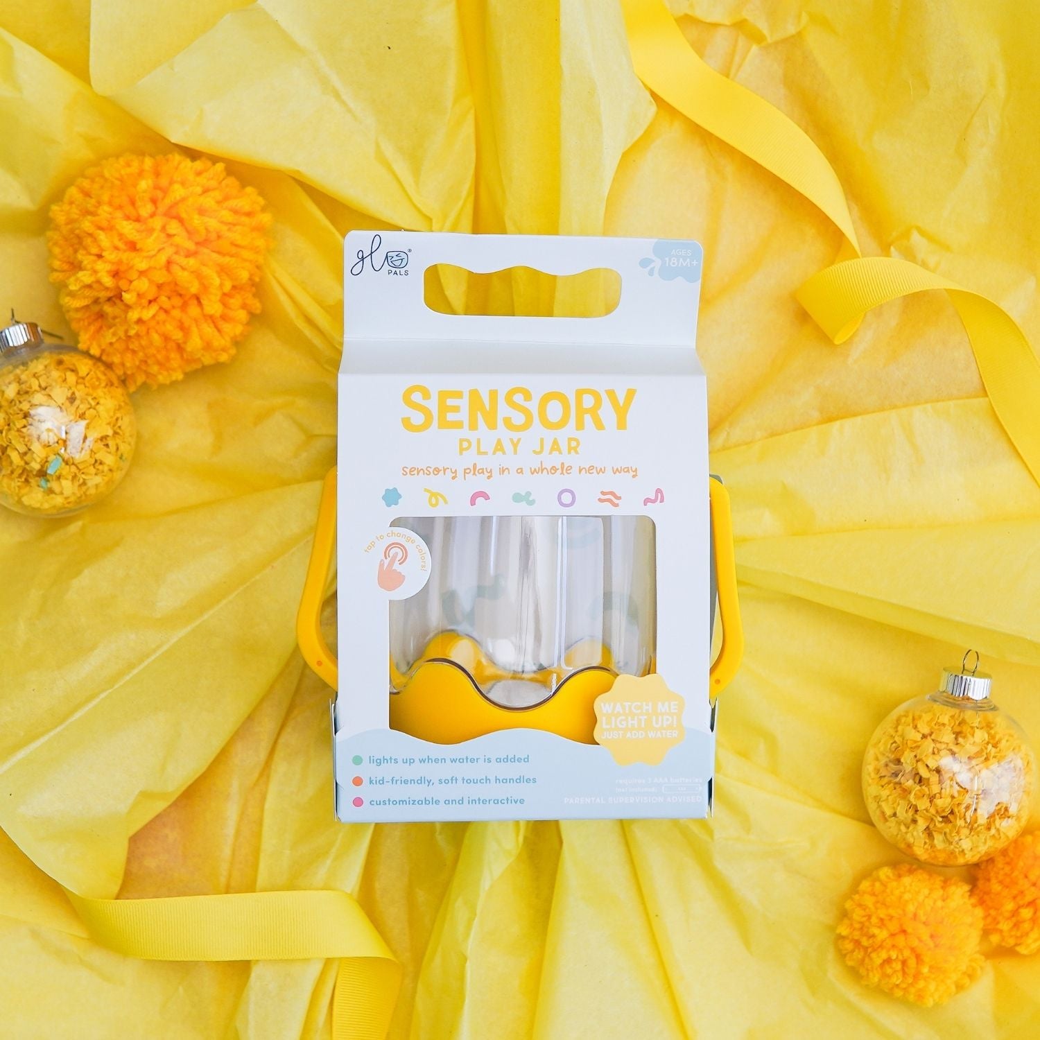 - La jarre sensorielle Glo Pals sont une expérience amusante.