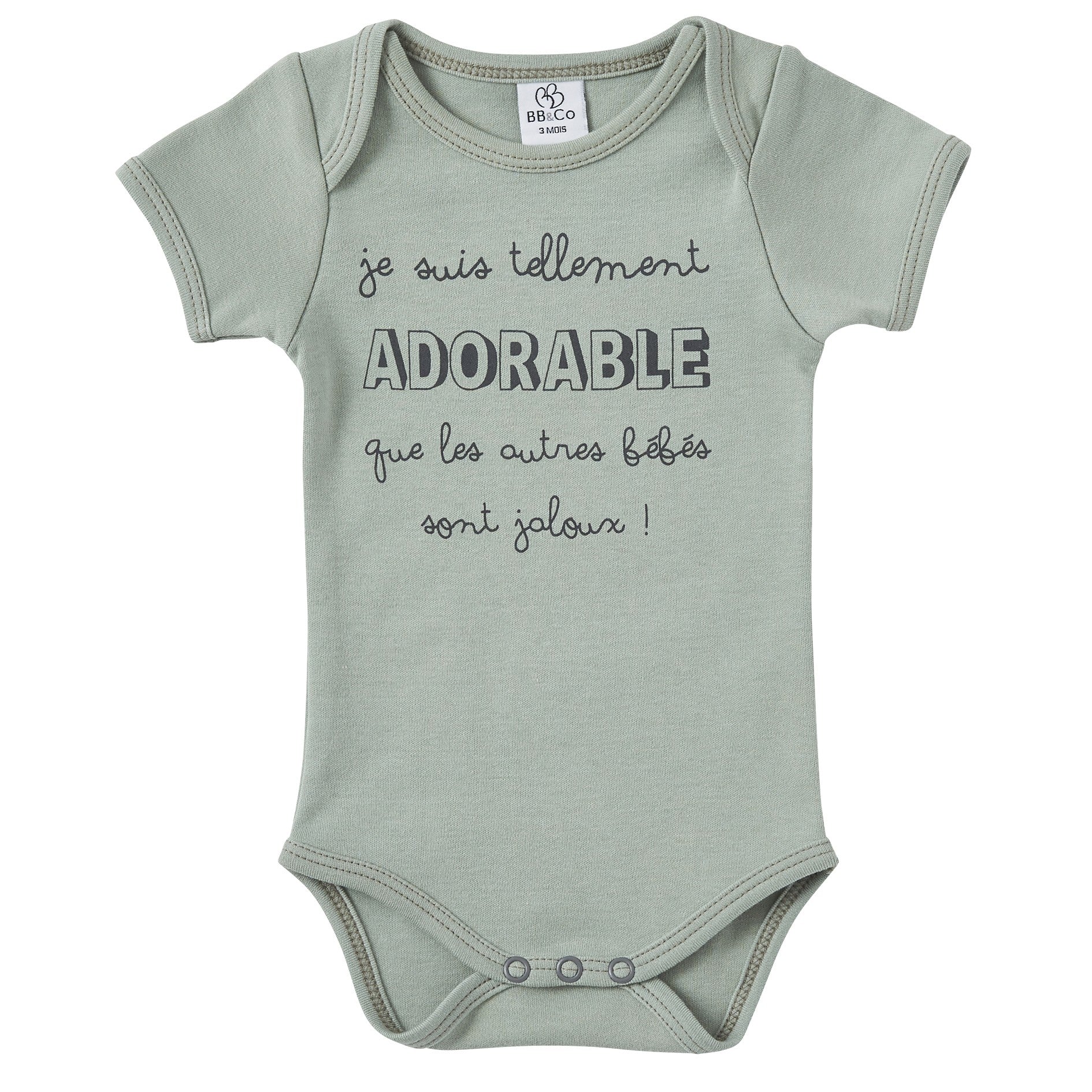 Body manches courtes “Je suis tellement adorable” vert de gris