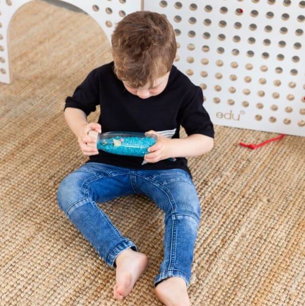 Une bouteille sensorielle que votre enfant pourra manipuler sans modération afin d'en découvrir le contenu : secouer, tourner, rouler... Avec cette bouteille sensorielle Spy Mer, votre enfant stimulera son imagination, sa créativité et éveillera sa curiosité. Une activité d'éveil pour stimuler l'ouïe, le toucher, la vue.