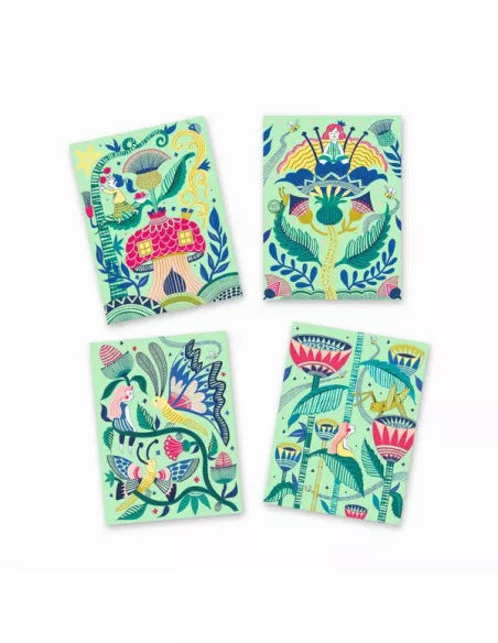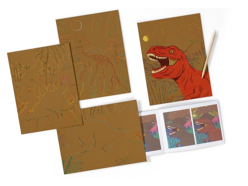 L'enfant gratte la surface des cartes avec le bâtonnet pour faire apparaître les illustrations imaginées par l'artiste: quel plaisir !
