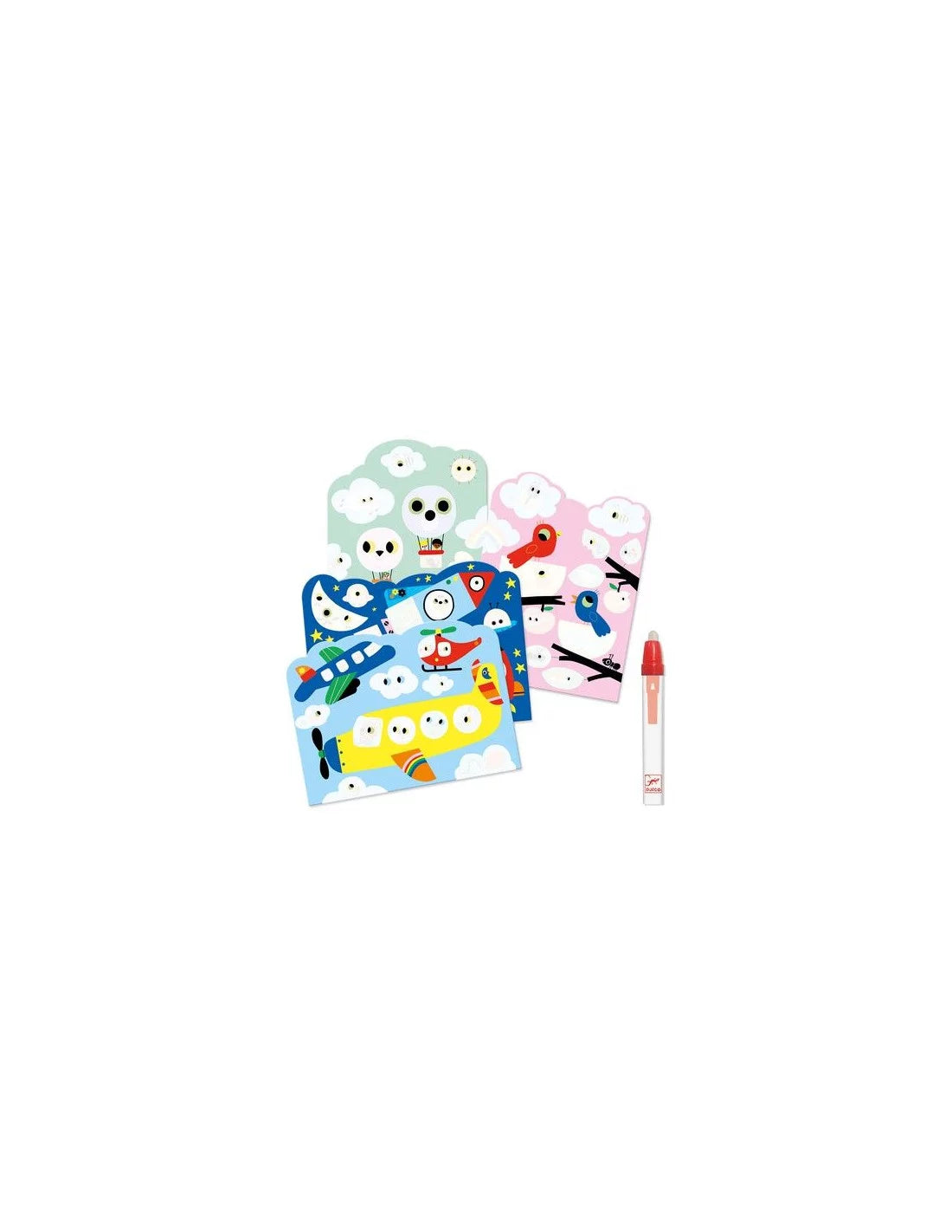 Découvrez le coloriage à l'eau caché dans le ciel de Djeco, une activité de coloriage originale pour les enfants dès 18 mois qui vont s'amuser à colorier des illustrations avec de l'eau. Un coloriage magique car les couleurs se révèlent lorsque votre enfant passera son crayon dessus.