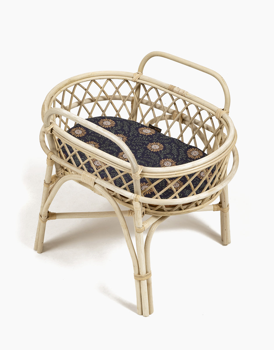 Couffin sur pied “Padang” en bambou et rotin et son matelas en coton pour poupées Minikane.