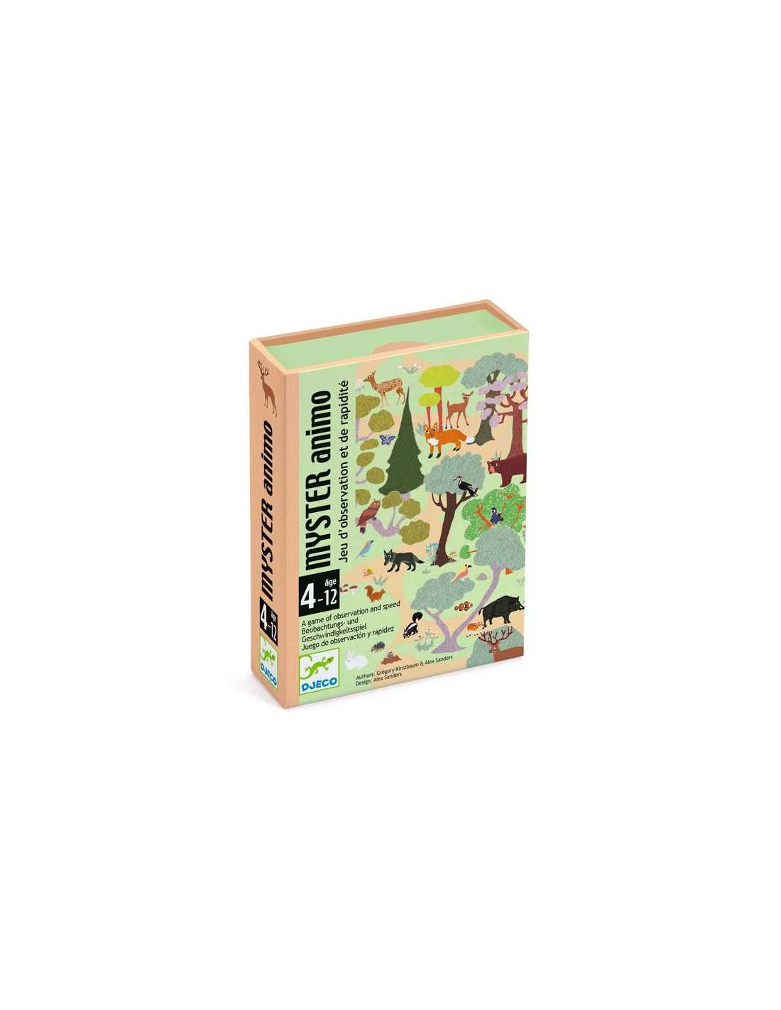 Découvrez le jeu de cartes Myster Animo de Djeco, un jeu d'observation et de rapidité pour les enfants dès 4 ans.