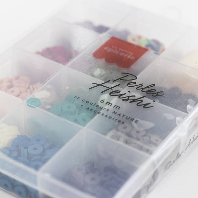 La Petite Épicerie - Box of 11 NATURAL colors of 6 mm Heishi pearls + accessories