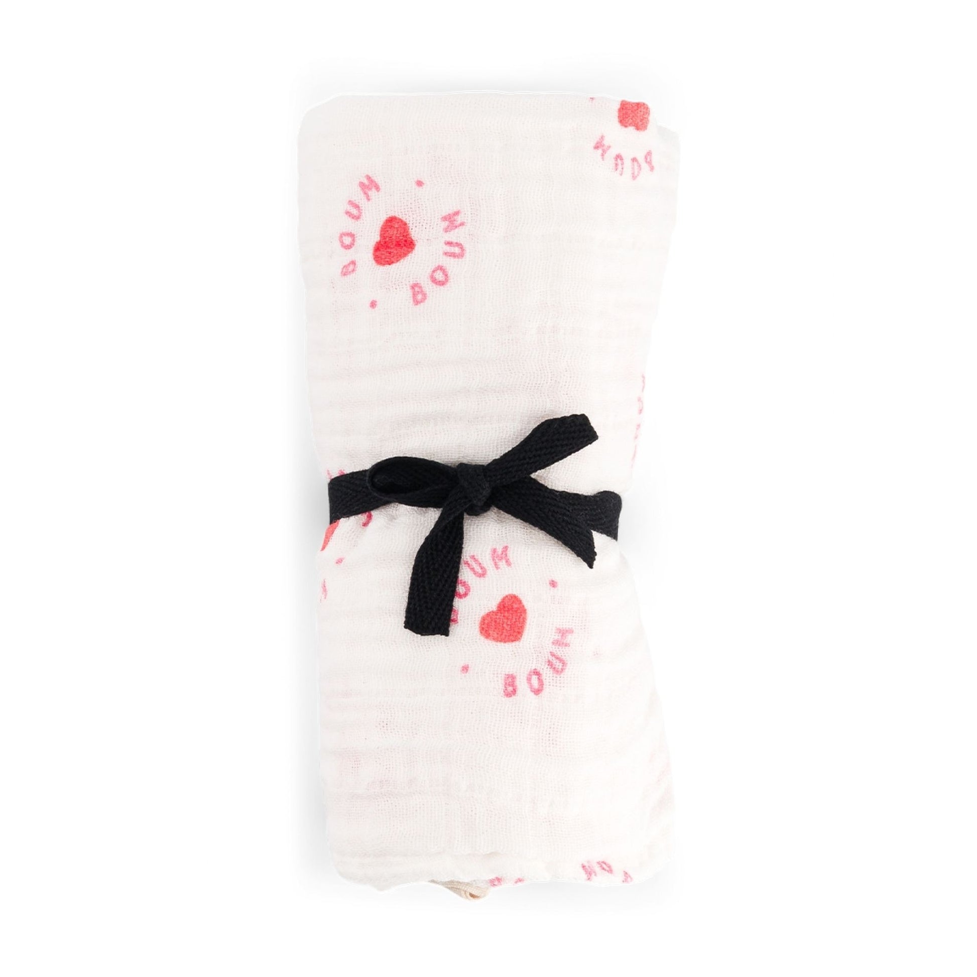 Notre lange Bianca imprimé Boum Boum est l'accessoire indispensable pour toute la famille. Ultra-pratique, il a plusieurs fonctions : bavoir, doudou, couverture, plan à langer, protège épaule après le biberon, ou encore comme foulardpour vous ou vos enfants. Fabriqués au Portugal, nos langes sont confectionnés en mousseline de coton. Cette matière est exceptionnellement douce, respirante et respectueuse de la peau délicate des bébés.