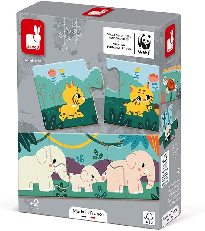 - EN PARTENARIAT AVEC WWF : Janod soutient les efforts du WWF pour protéger l’environnement et la biodiversité grâce à une gamme de jouets fabriqués à partir de matériaux plus durables. À travers cette gamme, nous visons à inspirer et à permettre à la jeune génération de se mobiliser pour la faune et la nature.